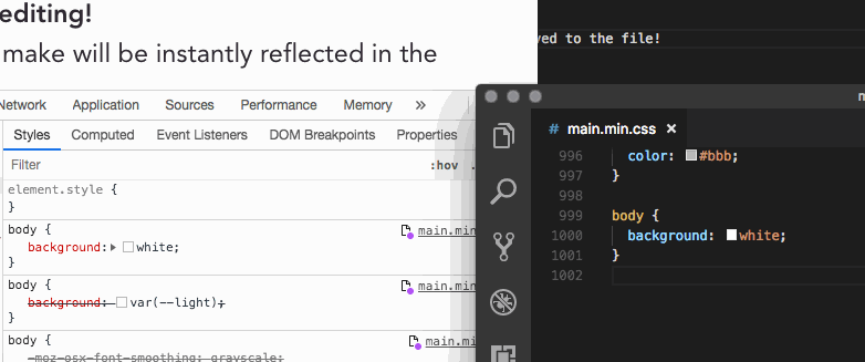 like Sublime or VS Code. Changes you make will be live immediately, and hitting Cmd+S
